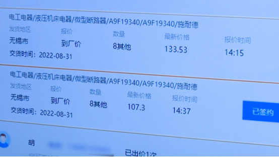 企采牛(無錫)網絡科技有限公司創始人 潘志明:這個眾業達電器股份有限公司第一次報價是133.53元,我們第二家報價是116元,第三家供應商報的是107.3元,這是官網價格是最便宜的,所以他跟著報了最低的價格,我們通過比對之后幫企業省了價差,我們幫他節省了16%,這是我們通過在線化競價之后幫企業省下的價格,這是我們提供的價值。