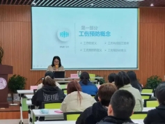 培訓環節,無錫錫惠檢測技術有限公司楊毅靜老師從工傷預防概念、工傷保險知識、工傷事故預防措施等方面作詳細介紹。