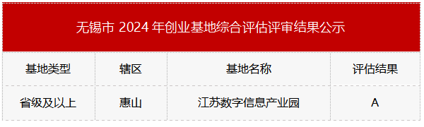 喜訊 | 江蘇數(shù)字信息產(chǎn)業(yè)園榮獲無錫市2024年創(chuàng)業(yè)基地綜合評(píng)估A類